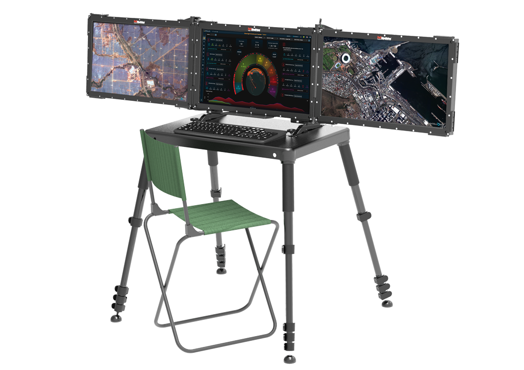 The system’s flexible configuration supports one, two, or three (24″) screens, enabling expanded viewing angles and multitasking capabilities essential for mission success. Its compact, foldable architecture allows rapid deployment and ease of transportation, making it ideal for mobile command, control, communications, intelligence, surveillance, and reconnaissance (C6ISR); Counter Unmanned Aircraft Systems (CUAS); fire control; ground control stations (GCS); and situational awareness operations.